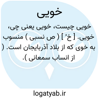 خویی. [ خ ُ ] ( ص نسبی ) منسوب به خوی که از بلاد آذربایجان است. ( از انساب سمعانی ).