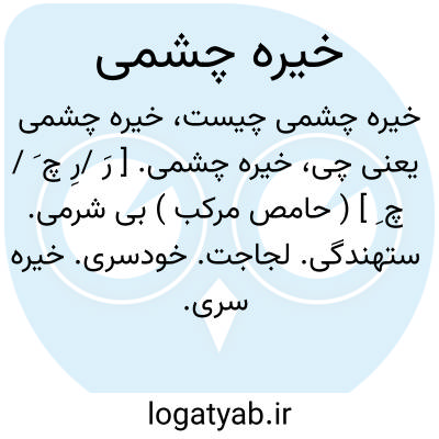 خیره چشمی. [ رَ /رِ چ َ / چ ِ ] ( حامص مرکب ) بی شرمی. ستهندگی. لجاجت. خودسری. خیره سری. خودرایی. عناد. ( یادداشت مؤلف ).