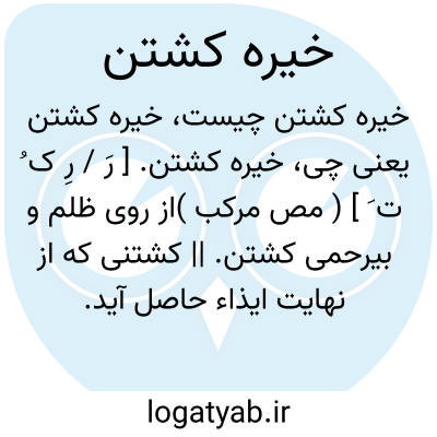 خیره کشتن. [ رَ / رِ ک ُ ت َ ] ( مص مرکب )از روی ظلم و بیرحمی کشتن. || کشتنی که از نهایت ایذاء حاصل آید. کشتنی که با نهایت آزار مقتول بعمل آید. || کشتن ضعیف. کشتن بی نوا.