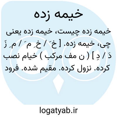 خیمه زده. [ خ َ / خ ِ م َ / م ِ زَ دَ / دِ ] ( ن مف مرکب ) خیام نصب کرده. نزول کرده. مقیم شده. فرود آمده: