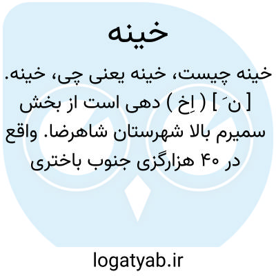 خینه. [ ن َ ] ( اِخ ) دهی است از بخش سمیرم بالا شهرستان شاهرضا. واقع در 40 هزارگزی جنوب باختری سمیرم و 10 هزارگزی راه مالرو رودآباد به حناء که 250 تن سکنه دارد. آب آن از چشمه و محصول آن غلات و حبوبات وبرنج و شغل اهالی زراعت و از صنایع دستی جاجیم بافی و راه مالرو است. ( از فرهنگ جغرافیایی ایران ج 10 ).