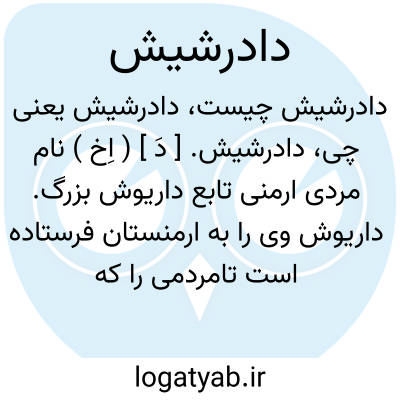 دادرشیش. [دَ ] ( اِخ ) نام مردی پارسی از یاران داریوش بزرگ و والی باختر، این مرد نیز بنابه سنگ نبشته بیستون بالشکری برای سرکوبی فراد نام عازم مرو شده است و فراد و لشکرش را شکست داده. ( ایران باستان ج 1 ص 545 ).