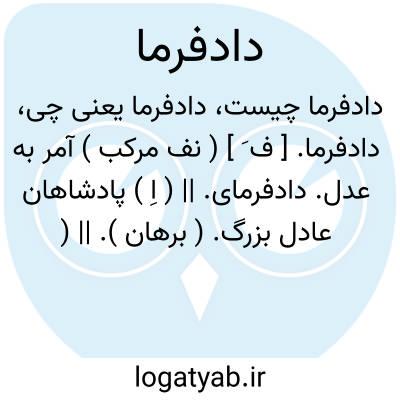 دادفرما. [ ف َ ] ( نف مرکب ) آمر به عدل. دادفرمای. || ( اِ ) پادشاهان عادل بزرگ. ( برهان ). || ( اِخ ) ازنامهای حق تعالی. ( برهان ) ( صحاح الفرس ):