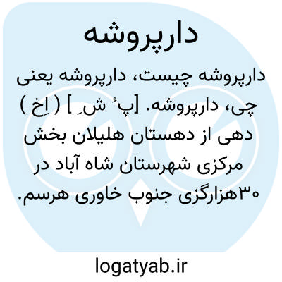 دارپروشه. [پ ُ ش ِ ] ( اِخ ) دهی از دهستان هلیلان بخش مرکزی شهرستان شاه آباد در 30هزارگزی جنوب خاوری هرسم. کنار باختری رودخانه صیمره. دشت. معتدل و سکنه آن 145 تن است. آب آن از چشمه و چاه و رودخانه پشت تنگ. محصول آنجاغلات، لوبیا، لبنیات. شغل اهالی زراعت و گله داری است. راه مالرو دارد. ( از فرهنگ جغرافیایی ایران ج 5 ).