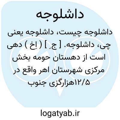 داشلوجه. [ ج ِ ] ( اِخ ) دهی است از دهستان حومه بخش مرکزی شهرستان اهر واقع در 12/5هزارگزی جنوب خاوری اهر و 6/5 هزارگزی شوسه اهربه خیاو کوهستانی معتدل دارای 389 تن سکنه است. آب آن از چشمه محصول آن غلات و حبوب و سردرختی، شغل اهالی زراعت و گله داری صنایع دستی مردم آن گلیم بافی و راه آنجا مالرو است. ( از فرهنگ جغرافیایی ایران ج 4 ).