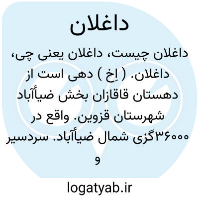 داغلان. ( اِخ ) دهی است از دهستان قاقازان بخش ضیأآباد شهرستان قزوین. واقع در 36000گزی شمال ضیأآباد. سردسیر و دارای 733تن سکنه است. آب آن از قنات و محصول آن غلات، و باغات انگور و چغندرقند و کرچک است. صنعت دستی اهالی قالی و گلیم و جاجیم بافی است. راه آن مالرو است و از طریق شید اصفهان میتوان ماشین برد. بنای امامزاده گوران آنجا قدیم است. ( از فرهنگ جغرافیایی ایران ج 1 ).