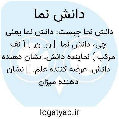 💡 دانش نما در فرهنگ دهخدا به معناهای نمایندهٔ دانش، نشان دهندهٔ دانش، عرضهکنندهٔ علم، نشاندهندهٔ میزان معلومات و اطلاعات آمدهاست.