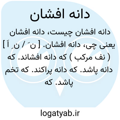 دانه افشان. [ ن َ / ن ِ اَ ] ( نف مرکب ) که دانه افشاند. که دانه پاشد. که دانه پراکند. که تخم پاشد. که حبه های خوردنی از بنشن و حبوب بر زمین پراکنده سازد. || که قطعات احجار کریمه و مروارید و نظایر آن نثار کند و پراکنده سازد.