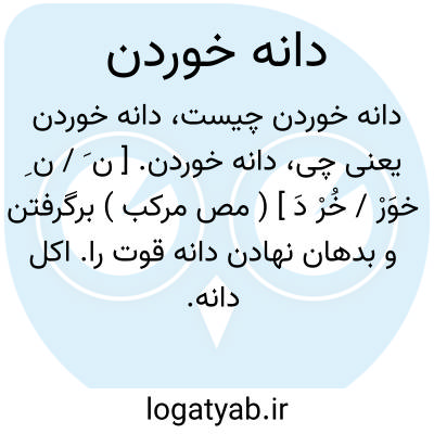 دانه خوردن. [ ن َ / ن ِ خوَرْ / خُرْ دَ ] ( مص مرکب ) برگرفتن و بدهان نهادن دانه قوت را. اکل دانه. || چینه خواری. دان خوردن: