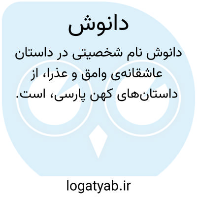 دانوش نام شخصیتی در داستان عاشقانهی وامق و عذرا، از داستانهای کهن پارسی، است. این اثر ادبی که ریشه در سنّتهای داستانپردازی پیش از اسلام دارد، در دورهی اسلامی به نظم و نثر فارسی بازگو شده و حکایت عشق ژرف و پرفراز و نشیب وامق به معشوقهاش، عذرا، را روایت میکند. در این داستان، دانوش به عنوان شخصیتی منفی و شرور ظاهر میشود که نقشی سرنوشتساز در جدایی عاشق و معشوق ایفا میکند. اقدام شوم او، که فروش عذرا به وامق است، نقطهعطفی در روایت به شمار میرود و مایهی هجران و رنج قهرمان داستان میگردد. این کنش، نام او را در ادبیات فارسی به نمادی از خیانت و فریب تبدیل کرده است. با توجه به تلفظ دَانوش و ریشهی کهن آن، این نام در زمرهی نامهای تاریخی و کمتر متداول زبان فارسی قرار میگیرد. امروزه، بیشترین کاربرد این نام در متون ادبی و تحقیقات مرتبط با داستانهای کهن است و یادآور داستان پرماجرای عشقی است که در آن خیانت، سرنوشت عاشقان را تحتالشعاع خود قرار میدهد.