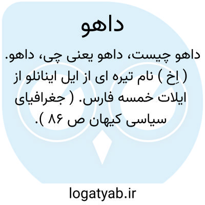 داهو. ( اِخ ) نام تیره ای از ایل اینانلو از ایلات خمسه فارس. ( جغرافیای سیاسی کیهان ص 86 ).