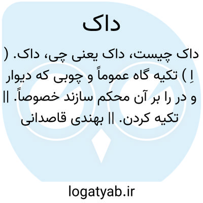 داک. ( اِ ) تکیه گاه عموماً و چوبی که دیوار و در را بر آن محکم سازند خصوصاً. || تکیه کردن. || بهندی قاصدانی را گویند که بفاصله یک میل و دو میل باشند و خطوط مردم را دست بدست برسانند. ( لغت محلی شوشتر، نسخه خطی ).