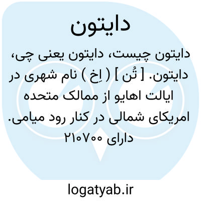 دایتون. [ تُن ] ( اِخ ) نام شهری در ایالت اهایو از ممالک متحده امریکای شمالی در کنار رود میامی. دارای 210700 سکنه.