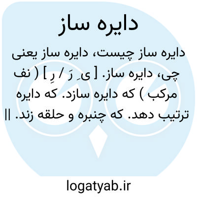 دایره ساز. [ ی ِ رَ / رِ ] ( نف مرکب ) که دایره سازد. که دایره ترتیب دهد. که چنبره و حلقه زند. || که دایره کشد. که شکل دایره رسم کند. || که دایره ( آلت موسیقی ) سازد. که ترتیب دایره کند.