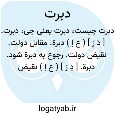 دبرت. [ دَ رَ ] ( ع اِ ) دبرة. مقابل دولت. نقیض دولت. رجوع به دبرة شود.