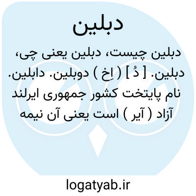 دبلین. [ دُ ] ( اِخ ) دوبلین. دابلین. نام پایتخت کشور جمهوری ایرلند آزاد ( آیر ) است یعنی آن نیمه از جزیره ایرلند که بدولت انگلیس تعلق ندارد. دارای 468000 سکنه و در کنار دریای ایرلند واقع است.