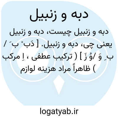 دبه و زنبیل. [ دَب ْ ب َ / ب ِ وَ /وُ زَ ] ( ترکیب عطفی، اِ مرکب ) ظاهراً مراد هزینه لوازم و اسباب خانه یا خود وسائل زندگی است مرادف تقریبی «کاسه و کوزه » در تداول امروزی عامه: زنی خواست [فرخی ] هم از موالی خلف و خرجش بیشتر افتاد و دبه و زنبیل در افزود. ( چهار مقاله ص 58 ). او رابخواب دیدند گفتند خدای با تو چه کرد گفت همه نواخت و خلعت و کرامت و اکرام بود ولکن آنجا هیچکس را آبروئی نیست الا کسانی را که ایشان بار عیال کشیده اند و تن در رنج دبه و زنبیل داده اند. ( تذکرةالاولیاء عطار ). || کنایه از دبر و قبل است: