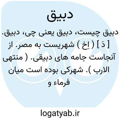 دبیق. [ دَ ] ( اِخ ) شهریست به مصر. از آنجاست جامه های دبیقی. ( منتهی الارب ). شهرکی بوده است میان فرماء و تنیس از اعمال مصر و ثیاب دبیقی به آن منسوبست. ( معجم البلدان ).