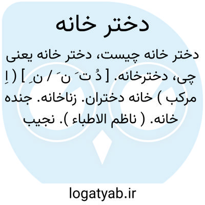 دخترخانه. [ دُ ت َ رِ ن َ / ن ِ ] ( ترکیب اضافی، اِ مرکب ) دختر شوی ناکرده مقیم خانه. دختر که در خانه پدر زندگی کند و هنوز شوی ناکرده باشد.