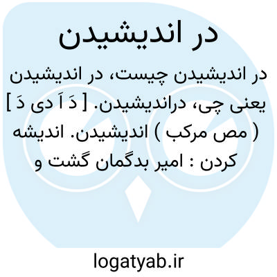 دراندیشیدن. [ دَ اَ دی دَ ] ( مص مرکب ) اندیشیدن. اندیشه کردن: امیر بدگمان گشت و دراندیشید و دانست که خشت از جای خود برفت. ( تاریخ بیهقی ص 235 ).