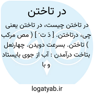 درتاختن. [ دَ ت َ ] ( مص مرکب ) تاختن. بسرعت دویدن. چهارنعل بتاخت درآمدن: آب از جوی بایستاد و با امیر بگفتند و وقت چاشتگاه بود، طلیعه ما درتاخت که خصمان آمدند بر چار جانب از لشکرگاه.( تاریخ بیهقی چ ادیب ص 590 ). || حمله کردن. تاختن: پور تگین بدتر است از ترکمانان که فرصت جست و در تاخت. ( تاریخ بیهقی چ ادیب ص 571 ).