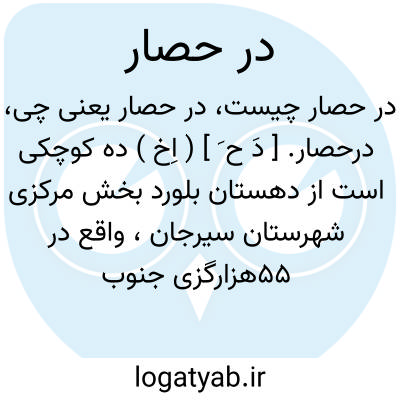 درحصار. [ دَ ح َ ] ( اِخ ) ده کوچکی است از دهستان بلورد بخش مرکزی شهرستان سیرجان، واقع در 55هزارگزی جنوب خاوری سعیدآباد و سر راه مالرو بلورد به گلناآباد. مزارع تخت، تورانی و جلالی جزء این ده است. ( از فرهنگ جغرافیایی ایران ج 8 ).