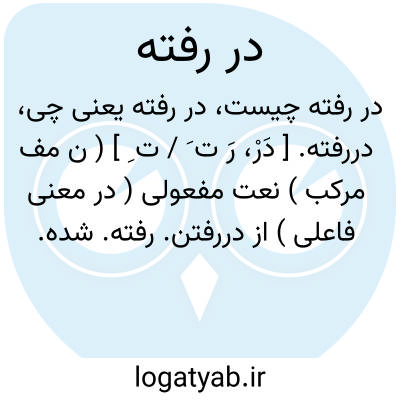 دررفته. [ دَرْ، رَ ت َ / ت ِ ] ( ن مف مرکب ) نعت مفعولی ( در معنی فاعلی ) از دررفتن. رفته. شده. || درآمده. بدرون رفته. || فرار کرده. || پاره شده. تغییر یافته: کف فرش در رفته است. پی و پاچین دررفته. || کسر شده. کم شده. منها شده.یک خیک روغن رَغم دررفته. ( یادداشت مرحوم دهخدا ). منهای. مفروق: خرج دررفته دو هزار ریال برایش باقی مانده. || در اصطلاح عامه، شانه خالی کرده.