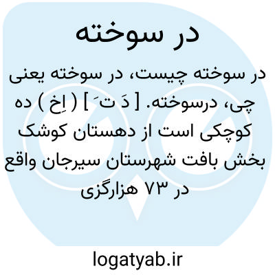 درسوخته. [ دَ ت َ ] ( اِخ ) ده کوچکی است از دهستان کوشک بخش بافت شهرستان سیرجان واقع در 73 هزارگزی خاور راه فرعی بافت به اسفندقه. ( از فرهنگ جغرافیایی ایران ج 8 ).