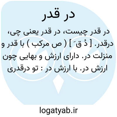 درقدر. [ دُ ق َ ] ( ص مرکب ) با قدر و منزلت در. دارای ارزش و بهایی چون ارزش در. با ارزش در: