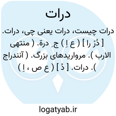 درات. [ دُ ] ( ع ص، اِ ) ج ِ داری، قال رسول اﷲ ( ص ): کونوا دراة و لاتکونوا رواة. ( تاریخ ابونعیم ج 1 ص 138 ). رجوع به داری شود.