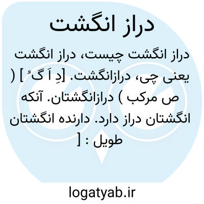 درازانگشت. [دِ اَ گ ُ ] ( ص مرکب ) درازانگشتان. آنکه انگشتان دراز دارد. دارنده انگشتان طویل: [ مردم سودان ] سطبرلب و درازانگشتان و بزرگ صورت باشند. ( حدود العالم ).
