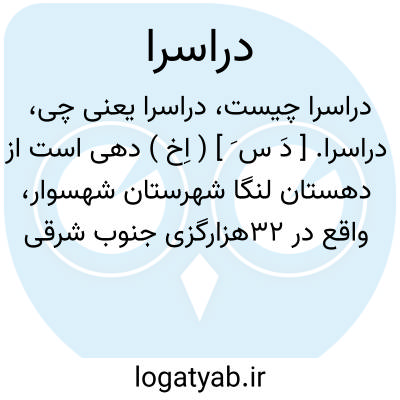 دراسرا. [ دَ س َ ] ( اِخ ) دهی است از دهستان لنگا شهرستان شهسوار، واقع در 32هزارگزی جنوب شرقی شهسوار و 12هزارگزی جنوب راه شوسه شهسوار به چالوس با 240 تن سکنه. آب آن از چشمه تأمین می شود و راه آن مالرو است. اهالی آنجا تابستان به ییلاق لنگا میروند. ( از فرهنگ جغرافیایی ایران ج 3 ).