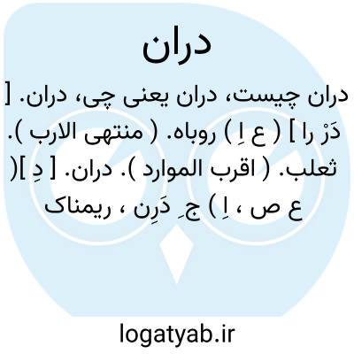 دران. [ دَرْ را ] ( ع اِ ) روباه. ( منتهی الارب ). ثعلب. ( اقرب الموارد ).
