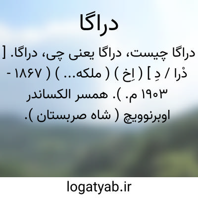 دراگا. [ دْرا / دِ ] ( اِخ ) ( ملکه... ) ( 1867 - 1903 م. ). همسر الکساندر اوبرنوویچ ( شاه صربستان ). وی زنی بیوه و از ندمای مادر شاه بود و زندگی گذشته وی به بدی شهرت داشت. الکساندر که به دام عشق او افتاده بود، در سال 1900 م. با وی وصلت کرد و این امر در مردم سخت سوء اثر کرد. اقدامات سیاسی آتیه شاه، عدم مقبولیت دراگا را مخصوصاً در محافل نظامی شدت داد. در سال 1903 م. گروهی از افسران به سرکردگی سرهنگ ماشین ( از برادران شوهر اول دراگا ) توطئه کردند و کاخ سلطنتی را نظامیان اشغال نمودند و شاه و ملکه را با قساوت بقتل رسانیدند. ( از دائرة المعارف فارسی ).