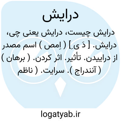 درایش. [ دَ ی ِ] ( اِمص ) اسم مصدر از دراییدن. تأثیر. اثر کردن. ( برهان ) ( آنندراج ). سرایت. ( ناظم الاطباء ):