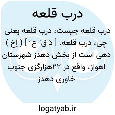 درب قلعه. [ دَ ق َ ع َ ] ( اِخ ) دهی است از بخش دهدز شهرستان اهواز، واقع در 22هزارگزی جنوب خاوری دهدز و 3هزارگزی باختر راه مالرو بادلان به چم مولا، با 165 تن سکنه. آب آن از چاه و قنات و راه آن مالرو است. ( از فرهنگ جغرافیایی ایران ج 6 ).