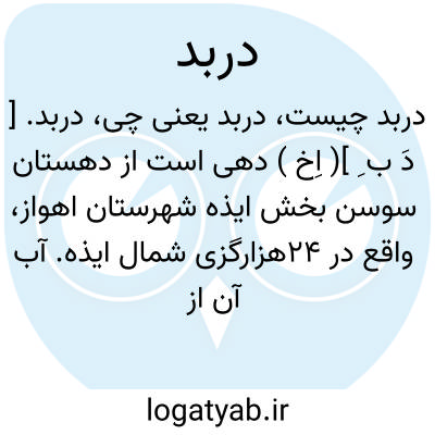 دربد. [ دَ ب ِ ]( اِخ ) دهی است از دهستان سوسن بخش ایذه شهرستان اهواز، واقع در 24هزارگزی شمال ایذه. آب آن از چشمه و راه آن مالرو است. ( از فرهنگ جغرافیایی ایران ج 6 ).