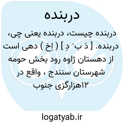 دربنده. [ دَ ب َ دِ ] ( اِخ ) دهی است از دهستان ژاوه رود بخش حومه شهرستان سنندج، واقع در 12هزارگزی جنوب سنندج و 5هزارگزی جنوب باختری حسن آباد، با 130 تن سکنه. آب آن از چشمه و راه آن مالرو است. ( از فرهنگ جغرافیایی ایران ج 5 ).