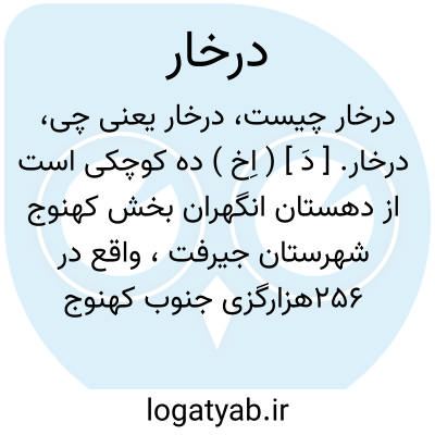 درخار. [ دَ ] ( اِخ ) ده کوچکی است از دهستان انگهران بخش کهنوج شهرستان جیرفت، واقع در 256هزارگزی جنوب کهنوج و 18هزارگزی خاور راه مالروانگهران به جاسک. ( از فرهنگ جغرافیایی ایران ج 8 ).
