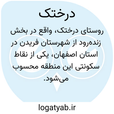 درختک. [ دِ رَ ت َ ] ( اِخ ) دهی است از دهستان ورزق بخش داران شهرستان فریدن، واقع در 5هزارگزی خاور داران و 3هزارگزی راه ماشین رو دامنه به بوئین، با 410 تن سکنه. آب آن از قنات و چشمه و راه آن فرعی است. ( از فرهنگ جغرافیایی ایران ج 10 ).