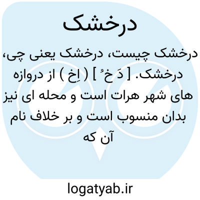 درخشک. [ دَ خ ُ ] ( اِخ ) از دروازه های شهر هرات است و محله ای نیز بدان منسوب است و بر خلاف نام آن که دروازه خشک است، دو نهر آب از کنار آن می گذرد. و یاقوت در معجم البلدان می نویسد خود آنرا بدین وضع دیده است. ( از معجم البلدان ).