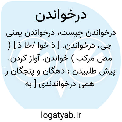 درخواندن. [ دَ خوا /خا دَ ] ( مص مرکب ) خواندن. آواز کردن. پیش طلبیدن: دهگان و پنجگان را همی درخواندندی [ به خانه خواب ذوالاعواد ] و همی کشتند، تا مهتران سپری شدند. ( مجمل التواریخ و القصص ). رجوع به خواندن شود.