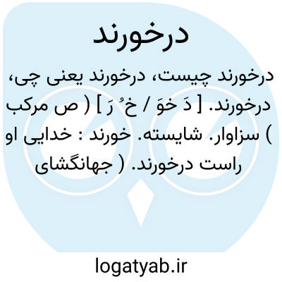 درخورند. [ دَ خوَ / خ ُ رَ ] ( ص مرکب ) سزاوار. شایسته. خورند: خدایی او راست درخورند. ( جهانگشای جوینی ). رجوع به خورند شود.