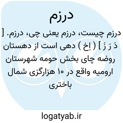 درزم. [ دَ رَ زَ ] ( اِخ ) دهی است از دهستان روضه چای بخش حومه شهرستان ارومیه واقع در 10 هزارگزی شمال باختری ارومیه و یک هزارگزی شمال راه ارابه رو ارومیه به موانا، با 150 تن سکنه. آب آن از رودخانه و راه آن مالرو است. ( از فرهنگ جغرافیایی ایران ج 4 ).