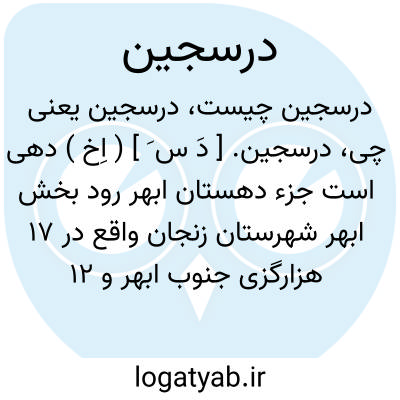 درسجین. [ دَ س َ ] ( اِخ ) دهی است جزء دهستان ابهر رود بخش ابهر شهرستان زنجان واقع در 17 هزارگزی جنوب ابهر و 12 هزارگزی راه مالرو عمومی با 1073 تن سکنه. آب آن از رودخانه میلان و راه آن مالرو است. ( از فرهنگ جغرافیایی ایران ج 2 ).