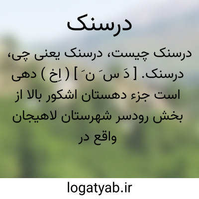 درسنک. [ دَ س َ ن َ ] ( اِخ ) دهی است جزء دهستان اشکور بالا از بخش رودسر شهرستان لاهیجان واقع در 56 هزارگزی جنوب رودسر و 20 هزارگزی جنوب خاوری سی پل با 160 تن سکنه. آب آن از چشمه و راه آن مالروو صعب العبور است. ( از فرهنگ جغرافیایی ایران ج 2 ).