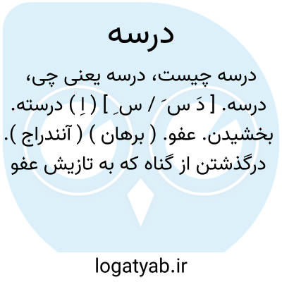 درسه. [ دَ س َ / س ِ ] ( اِ ) درسته. بخشیدن. عفو. ( برهان ) ( آنندراج ). درگذشتن از گناه که به تازیش عفو خوانند. ( شرفنامه منیری ).