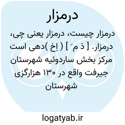 درمزار. [ دَ م َ ] ( اِخ )دهی است مرکز بخش ساردوئیه شهرستان جیرفت واقع در 130 هزارگزی شهرستان جیرفت و سر راه فرعی واین به ساردوئیه، با 110 تن سکنه. آب آن از قنات و راه آن فرعی است. این ده ادارات دارائی، بخشداری، دفتر اسناد و آمار، بهداری، پست خانه و 10 باب دکان و زیارتگاهی بنام سیداحمد دارد. ( از فرهنگ جغرافیایی ایران ج 8 ).
