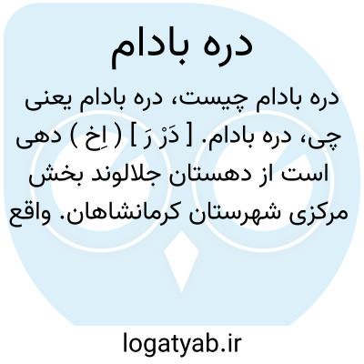 دره بادام. [ دَرْ رَ ] ( اِخ ) دهی است از دهستان جلالوند بخش مرکزی شهرستان کرمانشاهان. واقع در 55هزارگزی جنوب کرمانشاهان و 4هزارگزی چنار، با 300 تن سکنه. آب آن از زه آب رودخانه محلی و راه آن مالرو است. این ده در دو محل نزدیک بهم واقع شده به دره بادام یک و دو مشهورند. ( از فرهنگ جغرافیایی ایران ج 5 ).