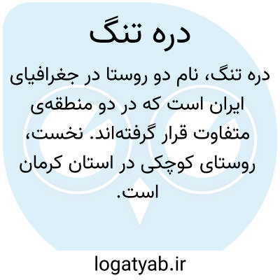 دره تنگ. [ دَرْ رَ ت َ] ( اِخ ) دهی است از دهستان کاغذ بخش دورود شهرستان بروجرد. واقع در 18هزارگزی شمال باختری دورود و کنارراه مالرو میراحمدی به لبیان بالا. آب آن از قنات و راه آن مالرو است. ( از فرهنگ جغرافیایی ایران ج 6 ).